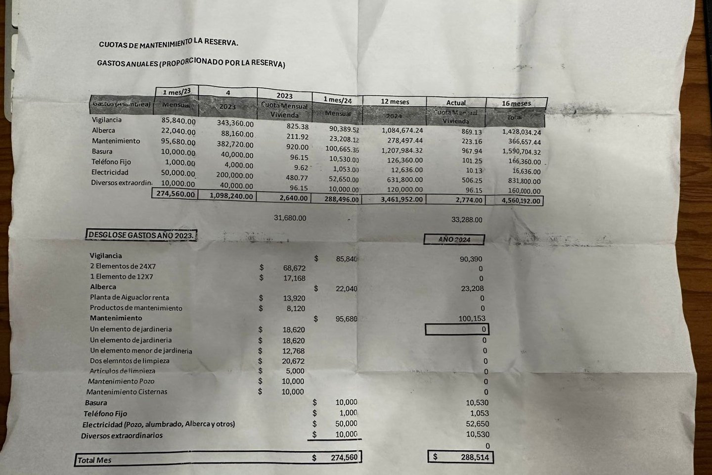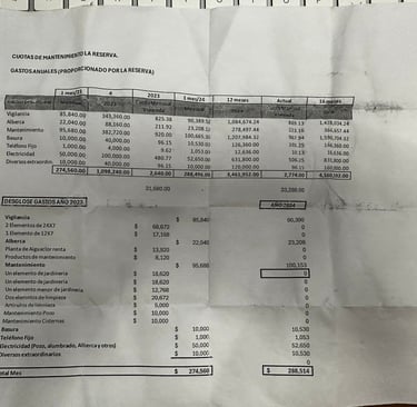 En cuanto a las cuentas que presentan, se observa un gasto mensual cercano a los $300,000 pesos, y eso considerando que ya eliminaron algunos conceptos indebidos. Esto nos da una idea clara de lo que pretenden cobrar en la famosa asamblea, donde impusieron su mayoría.