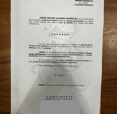 En las imágenes anteriores podrán visualizar el número de amparo y el juzgado de distrito correspondiente. Es su derecho estar informados; sin embargo, les pedimos discreción y prudencia.