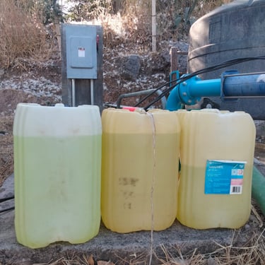 Por esta razón, se decidió delegar esta actividad a Don Pedro, quien ahora se encarga de surtir los bidones de diésel, resguardarlos en un lugar seguro, abastecer la bomba y llevar un registro detallado de encendido y apagado, ya que la bomba no es automática. En agradecimiento por su apoyo, se le brinda una aportación semanal.