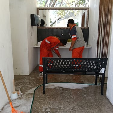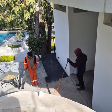 Se han contratado a tres personas de tiempo completo, con un horario de lunes a sábado, de nueve de la mañana a cinco de la tarde, para atender el mantenimiento que requiere el condominio. Estas personas se encargan de actividades como limpiar la maleza de los alrededores, cortar el pasto y podar las plantas, barrer las calles, lavar los baños de la alberca, regar, plantar nuevas especies y realizar labores generales de limpieza. También apoyan en tareas de pintura, jardinería y cualquier otra necesidad que surja en el condominio.